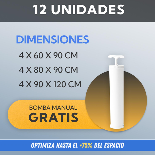 AHORRA $12.00012 Bolsas Al Vacio - Ahorro 75% de espacio + bomba GRATIS!