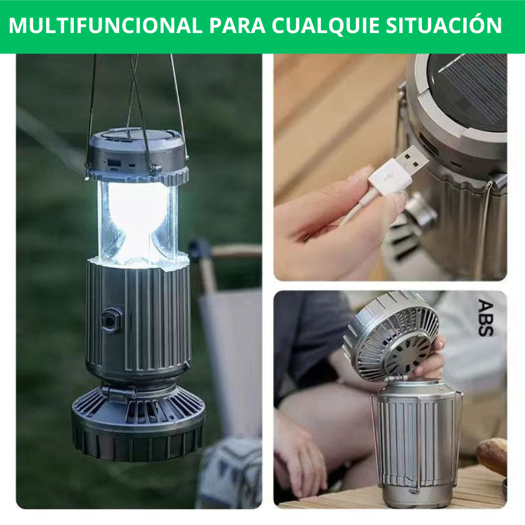 Disfruta de la naturaleza sin preocupaciones. EmergiLuz proporciona luz, ventilación y carga para tus dispositivos, todo en un solo equipo.