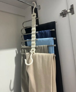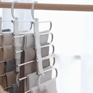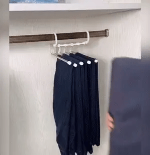 Organiza hasta 5 pantalones en una sola percha y gana espacio real en tu clóset sin invertir en cosas adicionales.